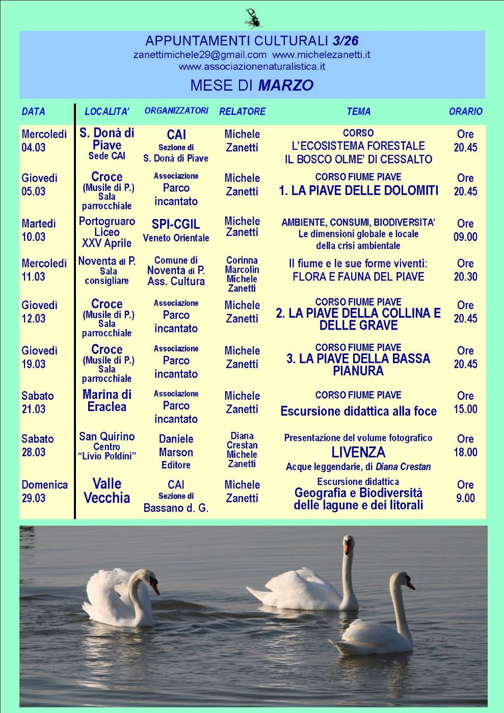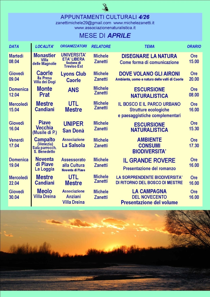 Svolgo da decenni una intensa attività divulgativa su temi di tipo naturalistico, ambientale ed ecologico, con particolare riferimento al Territorio veneto e agli ambiti di maggiore interesse del Territorio nazionale. Tale attività comprende, inoltre, la presentazione dei lavori di narrativa.